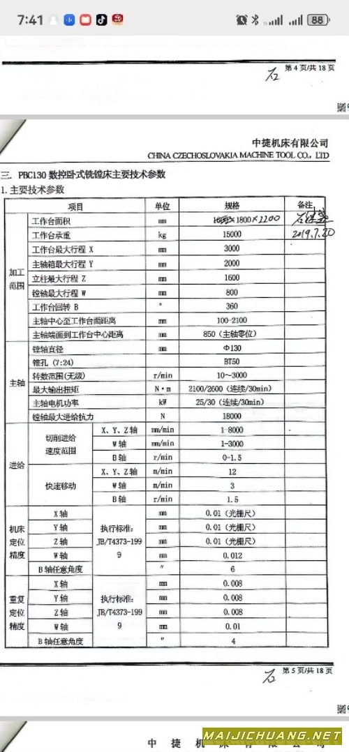 中捷130刨台镗床,1800/2200回台,承重15吨,X轴3米,Y轴2米,Z轴1.6米,光栅尺全闭环,西门子840DSL系统,在位