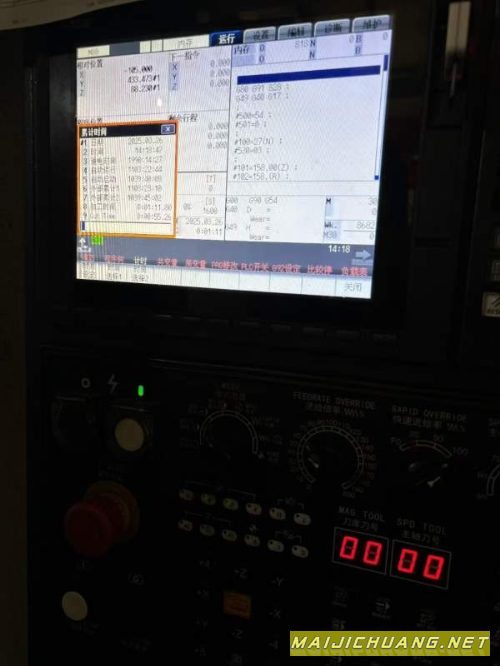 苏州工厂在位,2023年尧天数控YV-1580,仅使用1000多小时,三线滚柱导轨,X/Z轴55滚柱6滑块,Y轴四轨道,X轴55滚柱6滑块,罗翌主轴BT50/皮带8000转,功率18.5KW,油冷机,三菱M80系统。